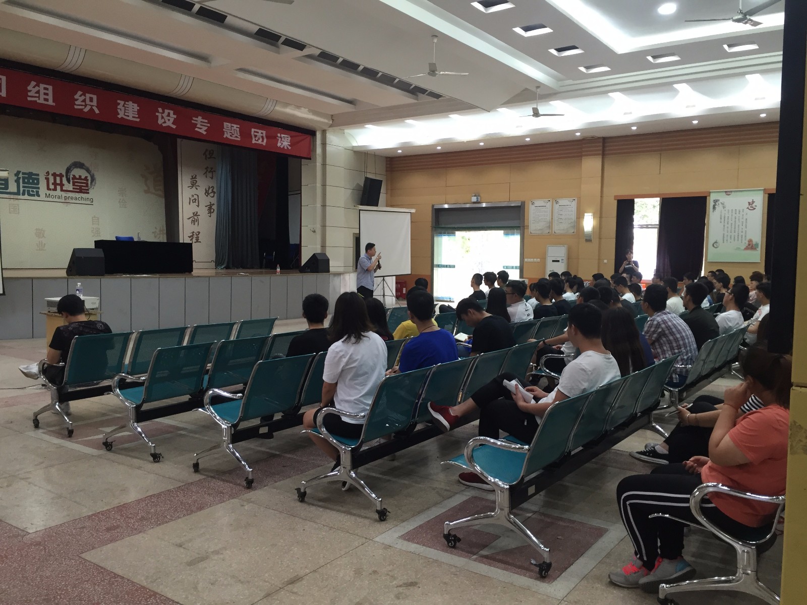 各系各班班干部代表及团干部代表参加了本次团体团课,团课上,杨书记向大家宣传了我校将要召开的两会,并要求各班通过差额选举选举出三位学生代表参加了两会。团课最后,杨书记通过一个小游戏让大家明白了交流的重要性。