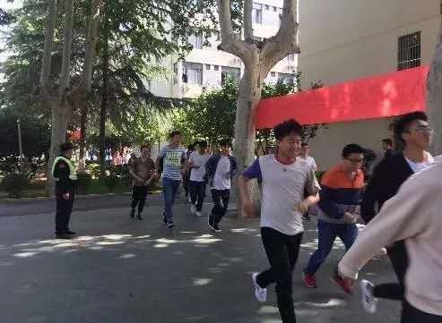5月10日10:06分,随着安全警报“嘟-嘟”声响起,学校本部南北教学楼内所有正在上课的老师立即停止了上课,与疏散疏导工作人员及其他老师迅速组织楼内学生按预定逃生路线撤离。