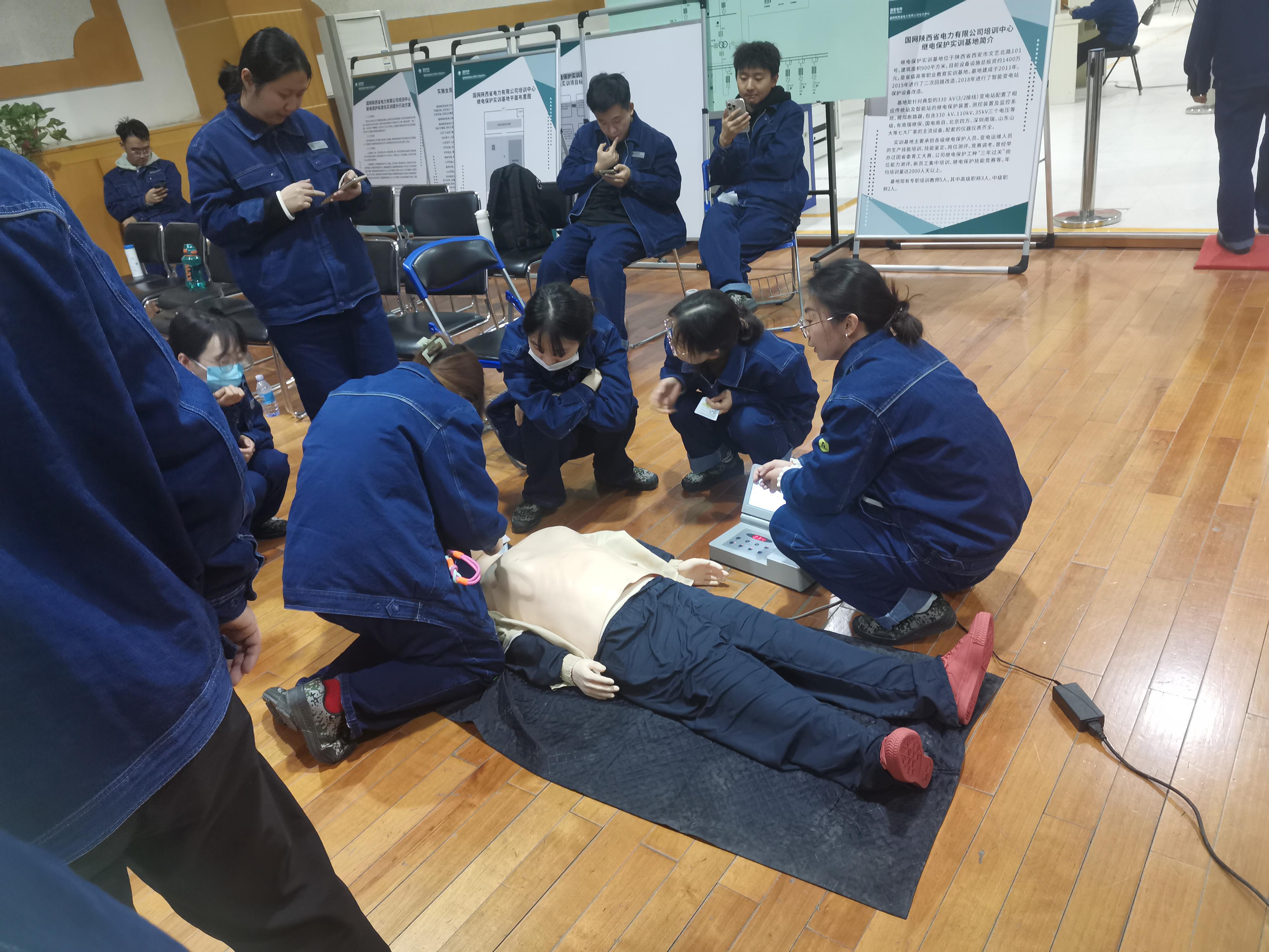 触电急救培训中,培训老师用仿真人体模型,向学员们教授了心肺复苏的操作要领,学员们在练习过程中不断纠正、不断学习,逐渐掌握这项应急救护能力。及时的救援措施会在危急时刻给予生命多一份保障。